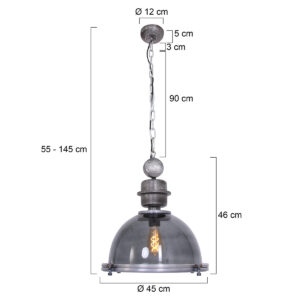 Laat u betoveren door de hanglamp 1452GR, vervaardigd uit glas en staal en afkomstig uit de Bikkel serie. Dankzij de grote glazen kap verlicht deze industriële lamp niet alleen de tafel, maar ook de gehele ruimte. De E27 fitting is geschikt voor alle lichtbronnen tot 40 Watt. Tijdens montage is de lamp in hoogte verstelbaar tot maximaal 145 centimeter.