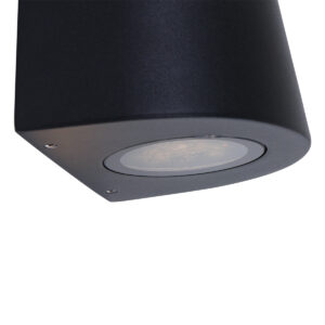 Compacte buitenlamp met een zwarte moderne kleur geeft zowel van de onderkant, als de bovenkant licht. De behuizing is gemaakt van aluminium en afgewerkt met een glasplaat. De krachtige lichtstraal verlicht het huis en tuin op een efficiënte manier. De zwarte lamp wordt inclusief 2 GU10 (345 Lumen, 2700 Kelvin) lichtbronnen geleverd.