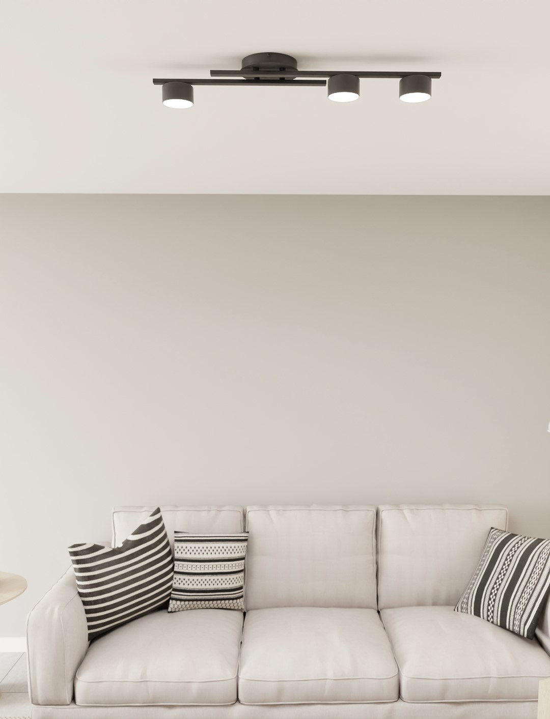 Plafondlamp Andres landelijk 3 lichtpunten Zwart
