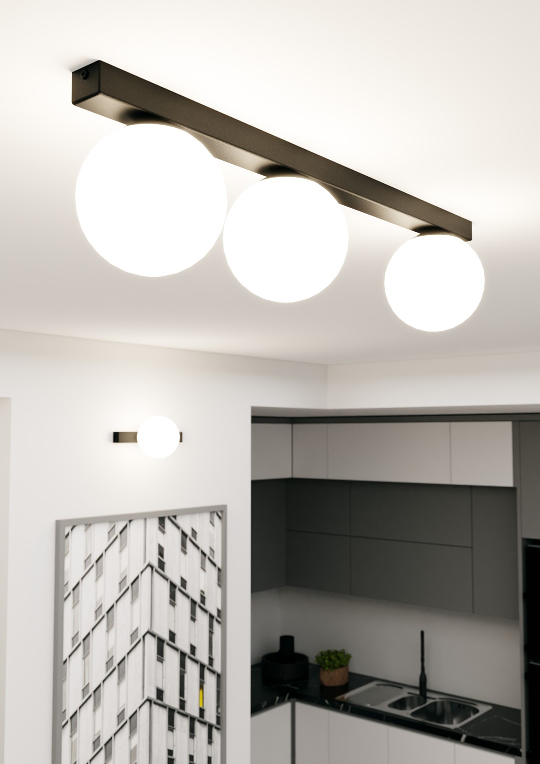 Plafondlamp Sergio landelijk 3 lichtpunten Zwart