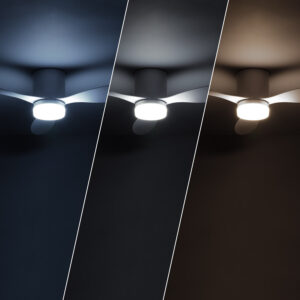 Ingebouwde Verlichting (optioneel): De Timme plafondventilator kan worden uitgerust met geïntegreerde LED CCT-verlichting, waarmee u de kleurtemperatuur kunt aanpassen (warm, neutraal, koud licht) en verschillende sferen kunt creëren naar uw behoeften.