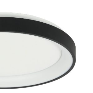 Ervaar de moderne elegantie van onze Zwarte Plafondlamp Ringlede 3691ZW. Met een royale diameter van 38 cm en een krachtige LED-module van 30 Watt straalt deze plafonnière een warm licht uit met een kleurtemperatuur van 2700 Kelvin en een indrukwekkende helderheid van maximaal 2400 Lumen, met een CRI van 90. De lamp is uitgerust met een dimbare driver, waardoor je moeiteloos de perfecte sfeer kunt creëren. Met zijn slanke profiel van slechts 6 cm dik is deze platte plafondlamp niet alleen een lichtbron maar ook een waar designstuk.