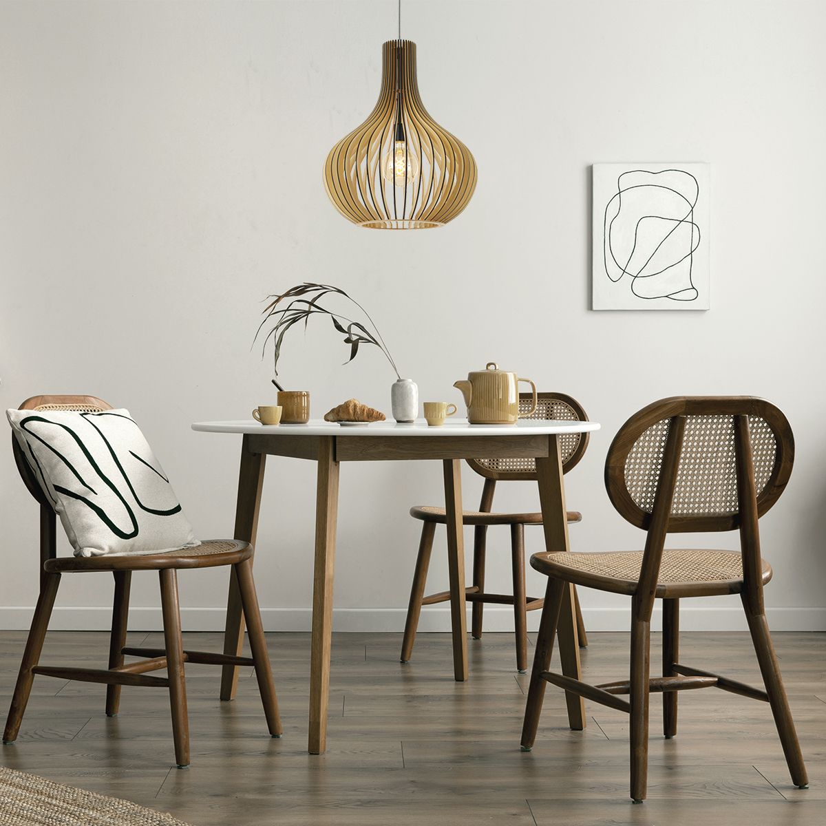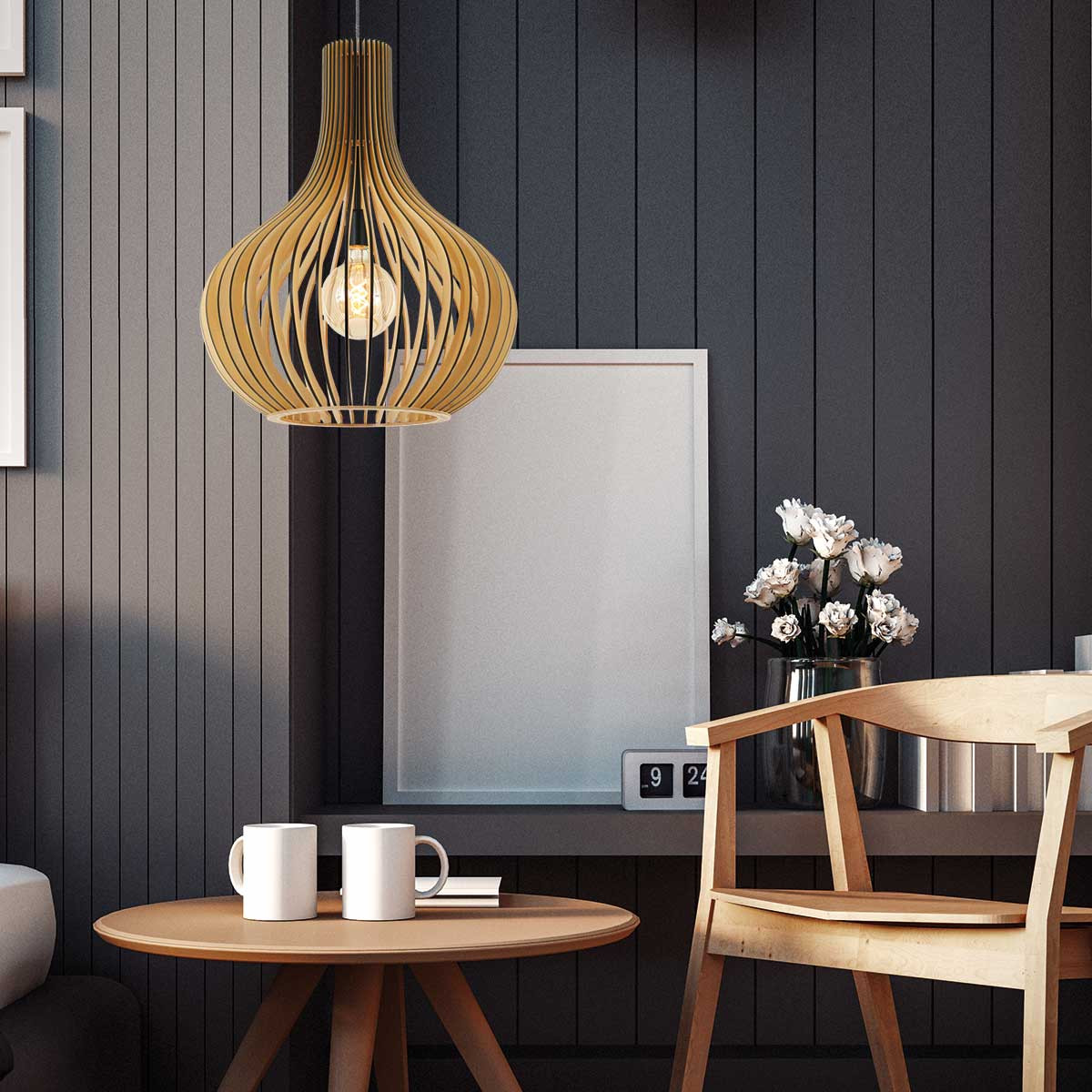 Ontdek de sierlijke hanglamp 2697BE uit de Smukt serie. Met een Scandinavisch uiterlijk past deze lamp perfect in een landelijk interieur. De Smukt is voorzien van een grote E27 fitting, geschikt voor alle soorten Eclipsenen tot maximaal 40 watt. De lamp is dimbaar met een externe dimmer en een dimbare Eclipse. Tijdens de montage is de lamp in hoogte verstelbaar tot maximaal 190 centimeter. De diameter van de kap is 50 centimeter. De lamp is volledig gemonteerd en de houten schotjes zijn verlijmd aan het frame.