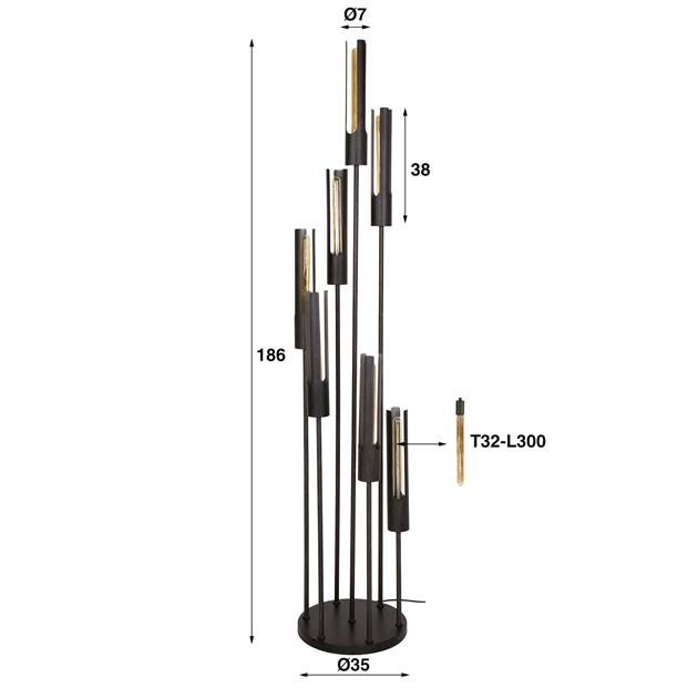 Deze vloerlamp brengt een elegante uitstraling dankzij het verfijnde ontwerp. Met 7 lichtpunten is deze lamp een ideale keuze voor iedere ruimte in huis waar een rustieke en warme sfeer gewenst is. Het gebruik van ons duurzame materiaal zorgt voor een uitnodigende, gezellige ambiance in uw interieur.