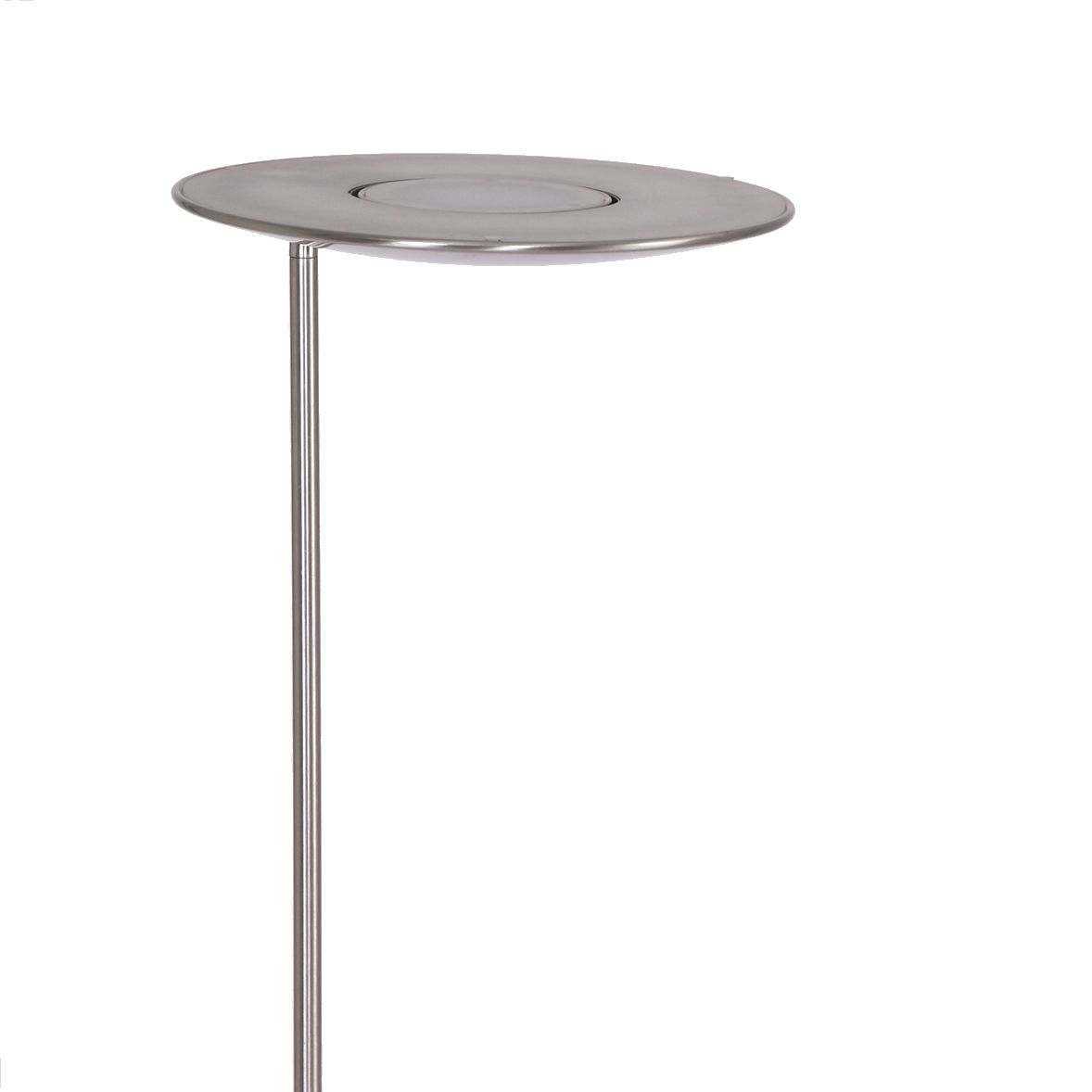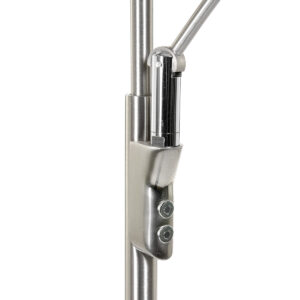 Staalkleurige vloerlamp uit de Zenith serie. De vloerlamp is voorzien van een leeslamp en een uplighter. Beide lampen zijn voorzien van een vervangbare LED module. De leeslamp heeft een LED module van 6 Watt met 600 Lumen en de uplighter heeft een LED module van 30 Watt met 3100 Lumen.