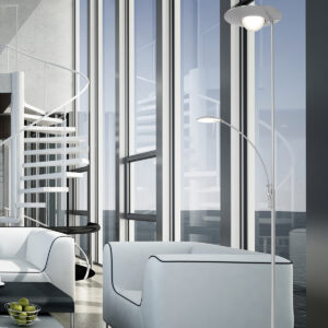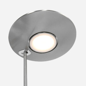 Ontdek de tijdloze pracht van de staalkleurige vloerlamp 1477ST uit de Zenith serie op de website van Lampenbaas Verlichting. Deze vloerlamp combineert elegantie met moderne technologie en is voorzien van vervangbare LED modules. De buitenste ring heeft een vermogen van 24 Watt met 2400 Lumen, terwijl de binnenste schijf 6 Watt met 600 Lumen levert. Beide lampen zijn dimbaar en de lichtkleur is instelbaar van 2200 Kelvin (warm geel licht) tot 4000 Kelvin (fel wit licht).