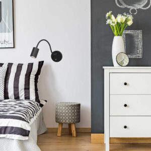 Ontdek de matte zwarte wandlamp 3390ZW uit de Sophie serie. Deze lamp is gemaakt van metaal en voorzien van een matzwarte coating. Dankzij de flexibele arm is de lamp ideaal als bedlampje te gebruiken. De lamp heeft een GU10 fitting en wordt geleverd met een 4,9 Watt lichtbron.